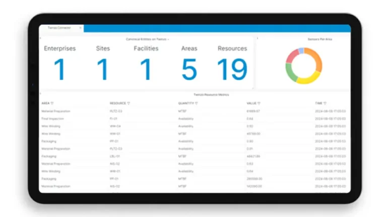 Twinzo 连接器提供了一个集中式仪表板,可无缝查看通过 REST API 发布到 Twinzo 的数据。它允许用户跟踪 Twinzo 环境中已连接和映射的 MES 实体,并显示每个区域已同步的指标数量及其最新更新信息。
