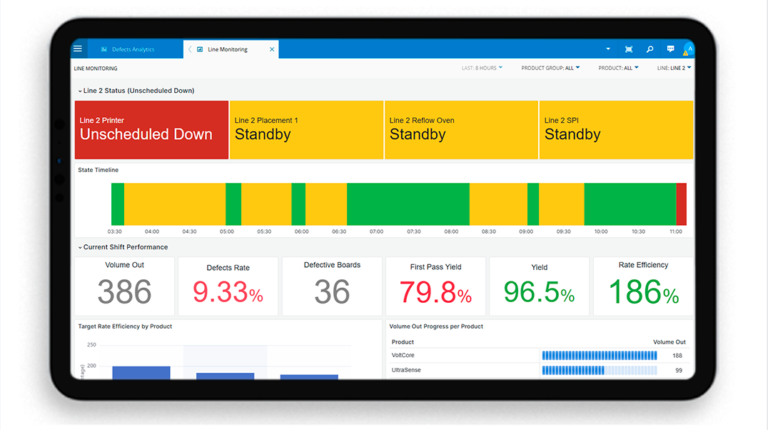 Der Echtzeitstatus der SMT-Linien wird durch klare, aggregierte Einblicke über mehrere Linien hinweg angezeigt. Die App vereinfacht die tägliche Nachverfolgung, unterstützt nahtlose Schichtübergaben und bietet erweiterte Transparenz der Linienleistung – so bleiben die Teams stets abgestimmt und proaktiv.