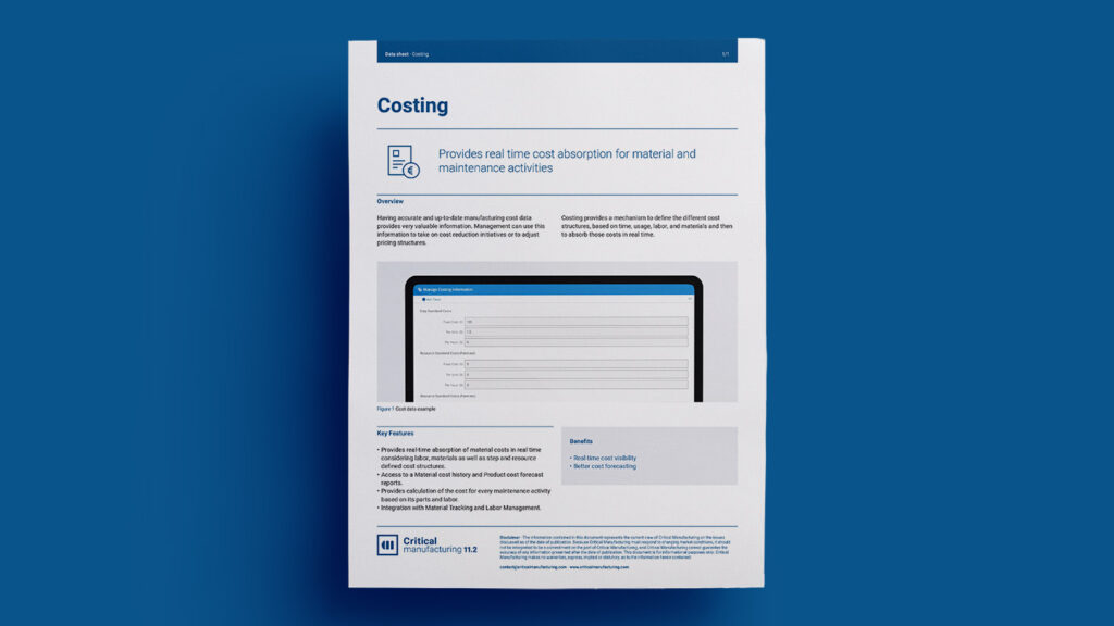 Provides real time cost absorption for material and maintenance activities.