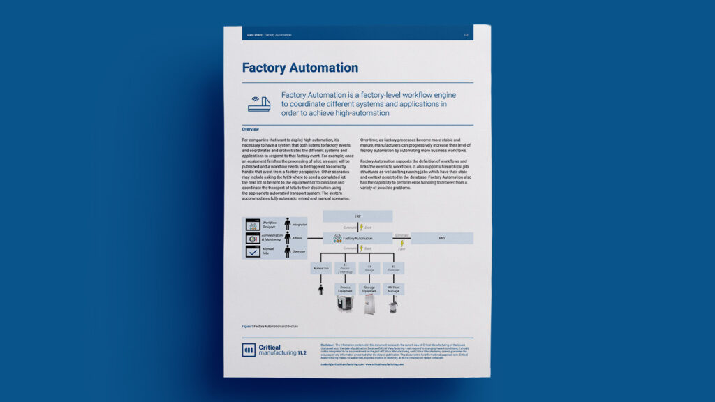 A factory-level workflow engine to coordinate different systems and applications in order to achieve high-automation.