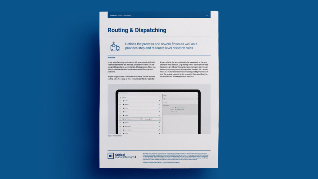 Defines the process and rework flows as well as it provides step and resource level dispatch rules.